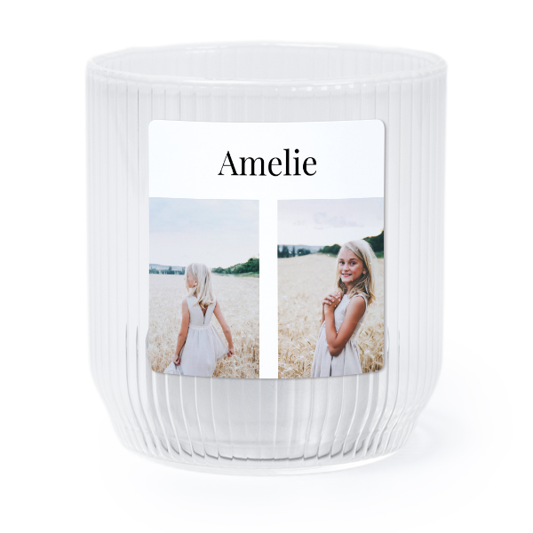 Choose your design for Personalised Clear Glass Tealight Holder with Square Stickers – Set of 6